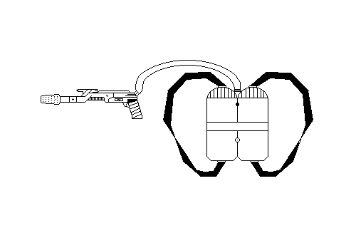 Die 2 Tanks, die sowohl ein Gas/Sauerstoff Gemisch oder ein Phosphorgemisch laden können, sind aus kugelsicherem Titan hergestellt. Der etwa 1,5 m lange Verbindungsschlauch ist aus mehrfach gefaltetem spezial Kunststoff gefertigt, was ihn ebenfalls äusserst stabil macht. Zwei Sicherheitsventile, direkt am Tank und in der Waffe selber, verhindern, dass bei einer Beschädigung brennbares Material unkontrolliert austritt. Durch sein patentiertes 2 Kammern System, kann der Flammenwerfer auch ein Mix aus Gas/Sauerstoff in der einen Kammer und Phosphor in der anderen laden.